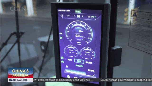 进入装载机驾驶室,记者近距离体验了徐工新能源装载机的便捷与高效。