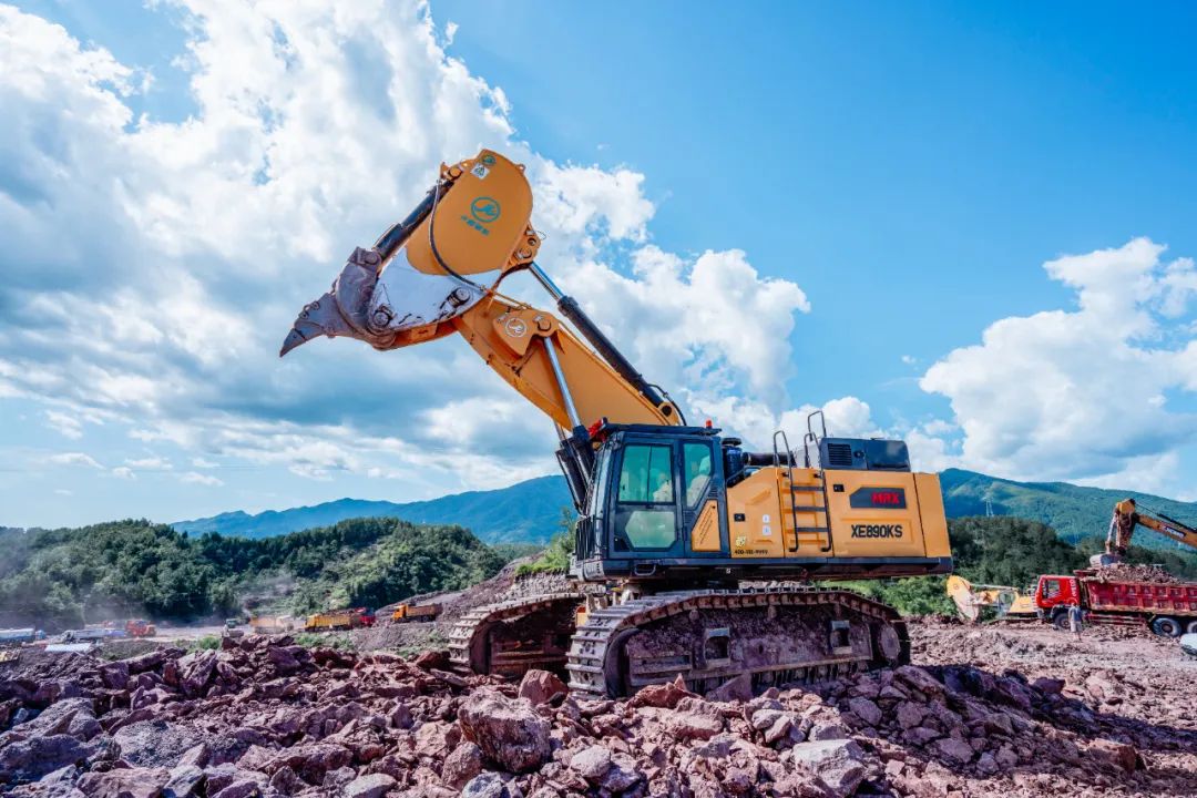 而另一款吸睛产品——徐工XE890KS岩石臂,专为非爆破开挖设计,配备百吨级动力,瞬时爆发力强,挖掘力更大,重载作业更有劲。针对履带底盘、配重、使用能效水平等方面进行全方位提升,配备专属作业机具“鹰钩臂”,在非爆破矿山、地基开挖等作业场景中有着得天独厚的优势。
