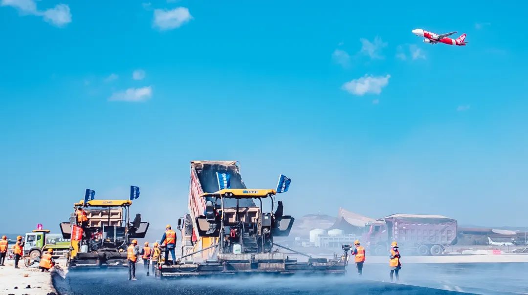 机场跑道建设的复杂性和高标准要求,一直是道路工程建设领域的难点。徐工智慧施工技术成套道路装备全场景解决方案基于机场施工场景的特点,通过集群化的施工技术,将多种类型的机械进行数据互通、智能调度,实现协同施工,能够大幅提升机场场景施工的效率。