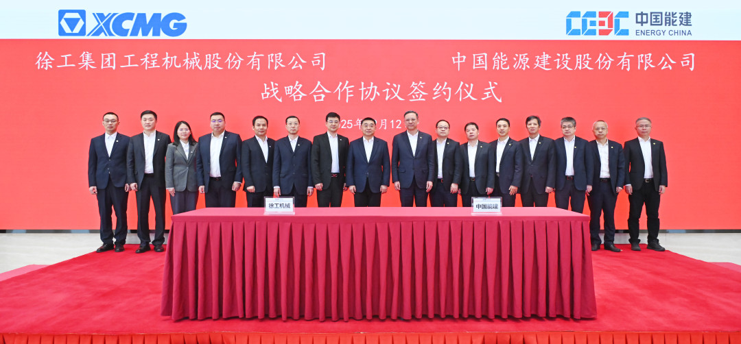 徐工集团副总裁罗光杰与中国能建党委常委、总会计师陈勇代表双方签署战略合作框架协议。根据协议,双方将聚焦产品及服务采购、科技创新、市场开发、高质量共建“一带一路”、投融资支持等领域开展战略合作,实现资源共享,促进互利共赢。