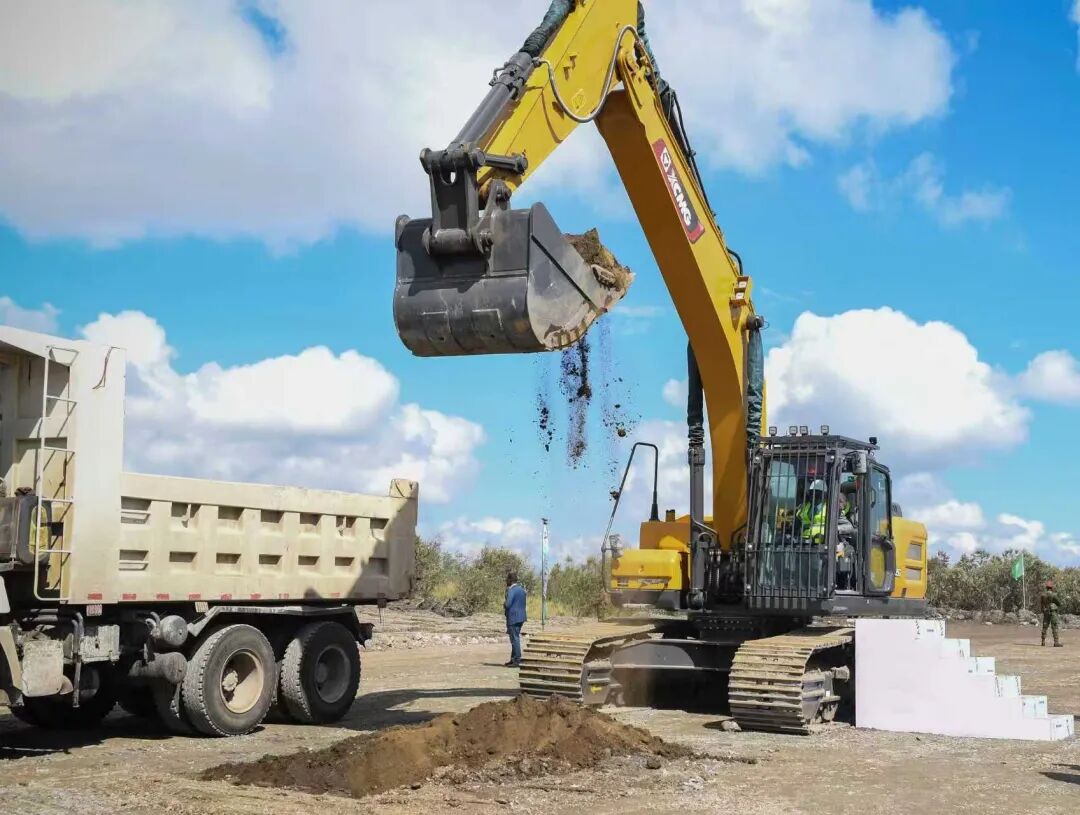 中企在肯尼亚首个绿色化肥生产项目——肯尼亚纳库鲁郡48万吨/年绿色化肥及配套地热电站奠基仪式上,总统威廉鲁托亲自试驾徐工挖掘机,对设备的精准操控性能与高效作业表现给予高度评价。