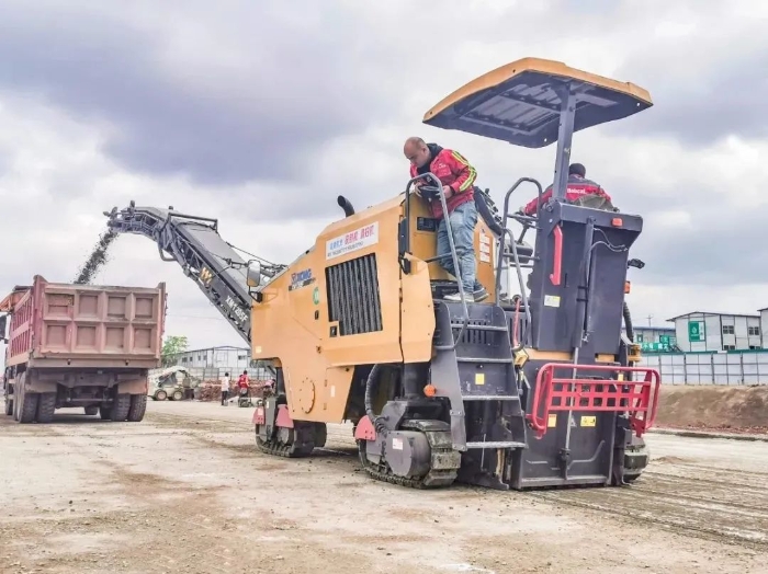 不仅如此,XM2005K通过优化的刀具排布及刀头入土角度,在保证了大铣深铣刨能力的前提下能够最大程度减小铣刨阻力,确保在各种苛刻工况下依然能够高效施工。徐工铣刨机在场馆配套道路建设中表现优异,其铣刨能力、施工稳定性、施工经济性均得到了施工方的肯定。