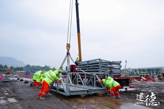 本次演练以山洪爆发、泥石流、台风等极端气候造成的道路内涝深坑积水、道路大面积塌方、公路桥梁冲毁以及危化品运输车泄漏等特殊情况为背景,模拟公路水毁阻塞交通、桥梁垮塌中断交通,演练队伍严正执行,在规定时限内迅速完成桁架拼装、桥面铺设、桥梁落座,完成公路应急装备漕渡任务。