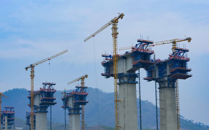 在桂黔交界的百色市乐业县,苍翠延绵的群山深处,一根根百米高墩拔地而起,自东向西整齐排列。十余台徐工S1系列塔机与青山比肩,正有条不紊地吊装,助力雅长特大桥建设加速。