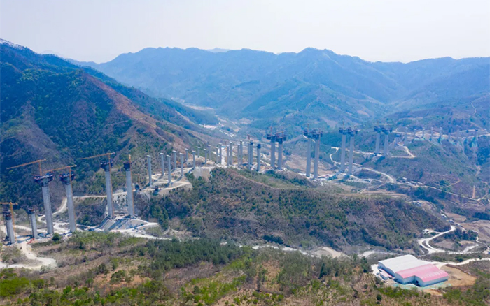 乐望高速是黔桂两地便捷连通的重要省际通道,主线桥隧比达78%,是目前广西桥隧比最高的高速公路。雅长特大桥作为乐望高速控制性工程之一,全长2312米,主桥主墩最大高度155米,为广西第一高墩。