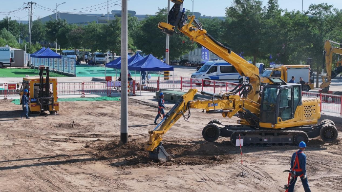 在宁夏现场的应用中,徐工开挖立杆一体机的安全性和效率出色,完成一套完整工序(挖坑-放置预制件-抓杆-竖杆-回填土-夯实)仅需18分钟,比竞品效率快三分之一。