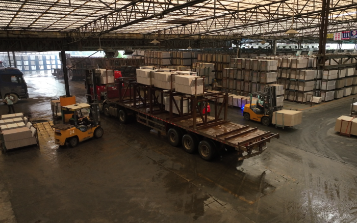 在华南区某大型陶瓷厂内,十几台徐工重载高压锂电叉车正在进行繁忙的搬运装卸工作,为即将到来的市场旺季做好准备。
