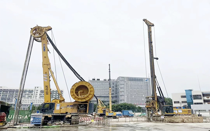 为确保施工顺利,项目方根据地质特点,投入了8台徐工设备,配合进行砂层、入岩段施工。