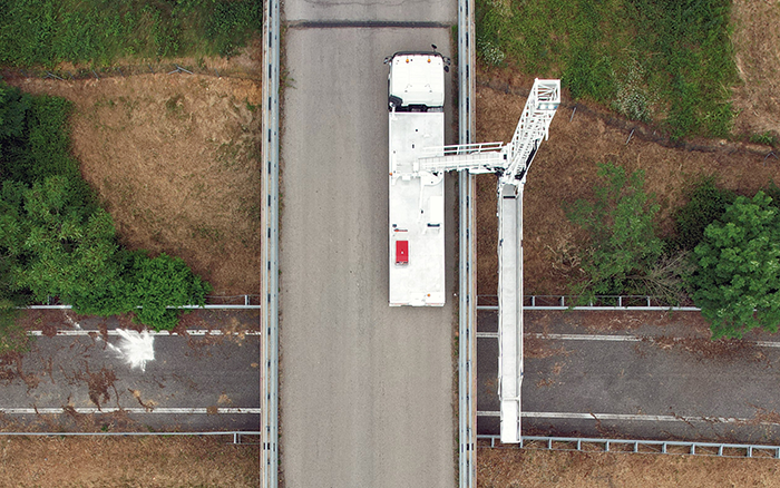 徐工桥梁检测车凭借稳定可靠的上装性能、稳定安全的桁架、精准的液压系统操控、智能人性化的操控逻辑,以及定制化的可升降可水平移动活动作业平台,方便检修人员在桥梁底部进行登高式作业,极大提升了作业效率与灵活性,帮助客户及时超预期、低成本高效率的完成了检修任务,保障了该地区的道路安全。