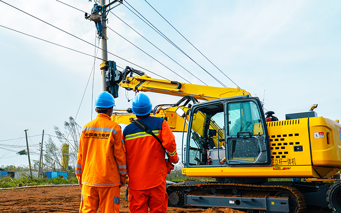 面对秋台风“摩羯”的侵袭,广东交通运输部将台风响应等级提升至一级。徐工开挖立杆一体机迎“风”而上,在广东紧急开展抗灾复电抢修工作,让原本需要2台挖机、10多名工作人员齐力拉线的工作变得安全“轻松”,大大降低了灾后抢修的人身风险,保障当地居民的电力安全稳定供给。