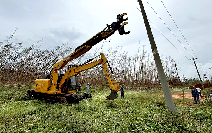 徐工开挖立杆一体机产品一车多能,平均每次新立电杆作业仅耗时20分钟,是砼杆组立施工作业的革新式产品。相较传统作业人力、吊机与挖机配合的方式,更具通用性、高效率和安全性,为本次台风抢险救援行动节省了大量的人力和时间成本,获得施工方的高度认可。