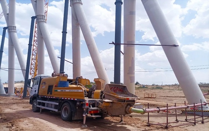 项目亮点之一的间冷塔,采用了创新的钢管混凝土X柱结构,单柱高达30米,重达51.9吨。然而,随着泵送高度的攀升,混凝土黏度急剧增加,泵送过程中极易出现憋压熄火现象,对施工设备提出了前所未有的要求。