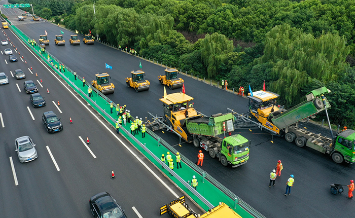 自2022年下半年开始,徐工成套道路机械就已多次参与过连霍高速的施工工作,受到业主方的肯定。2024年下半年,徐工道路明星“工友团”再次闪亮登场,凭借自己的智慧“大脑”,在连霍高速的养护工程建设中大放异彩。施工由徐工超大宽度摊铺机RP2405和压路机XD133S这两款高性能设备联袂,在摊铺厚度为100px的沥青上面层进行高效施工。凭借超强的作业能力和先进可靠的产品性能,在高速路面上精准实现一次摊铺成型。