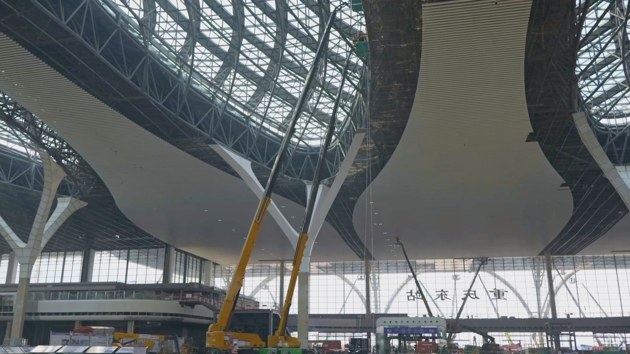 在重庆东站,十数台高空作业平台正在如火如荼的进行钢结构的安装工作,这些高空作业平台作业精准高效,动作平稳灵活,为施工工作节省了大量时间与人力成本。