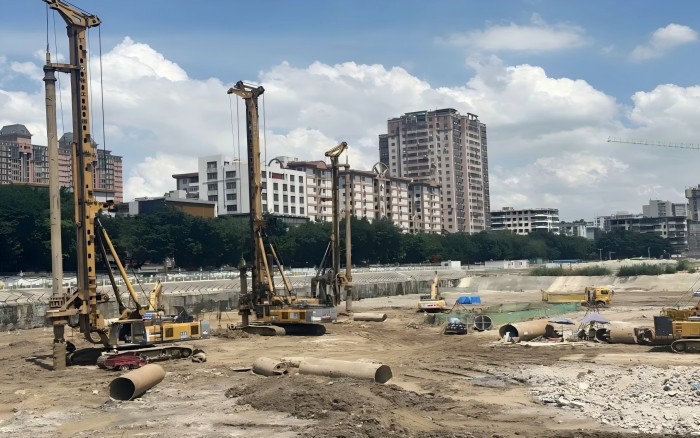 施工区地质构造复杂,石灰岩、沙层,粘土和溶洞交错,桩深20-30m,桩径0.8-1.4m,且面临塌方、缩孔、漏浆等危险。如此高难度的施工条件,项目方果断选择徐工旋挖钻机进行助力。