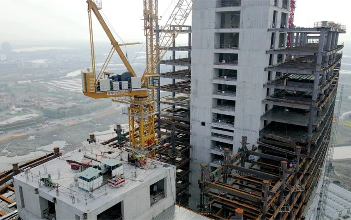 高效、可靠的徐工XGL630-50S塔机承担着楼承板、钢结构和核心筒主体结构等建筑材料的吊装重任。历时340天,从大象酒店的象腿、象鼻三个核心筒结构施工,徐工塔机高效吊装,配合施工人员完成了从0到180米的建设征程。