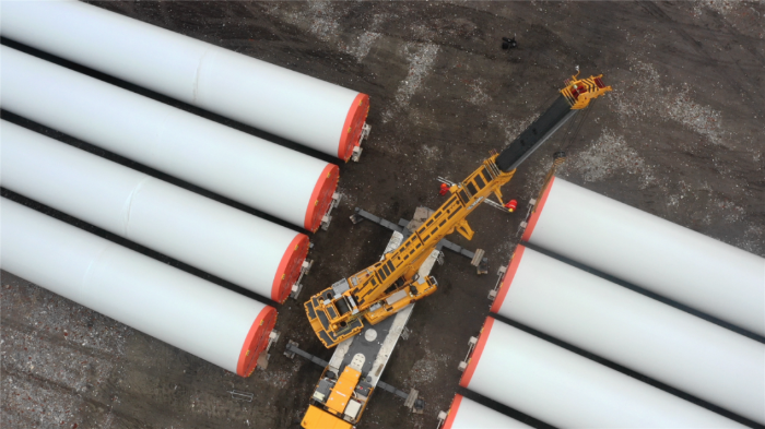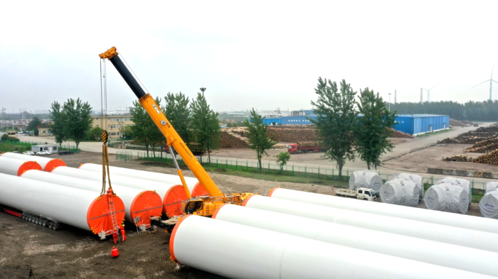 在繁忙的港口,长40米、重100吨的风力发电塔筒摆放整齐,等待着一次关键的腾挪,吊装空间局促——塔筒摆放距离较近,荡距空间严重受限,这是对起重机性能与操控的极致考验。徐工G2代起重机XCA200G8-1从容入场,以实力宣告:空间,绝非限制。