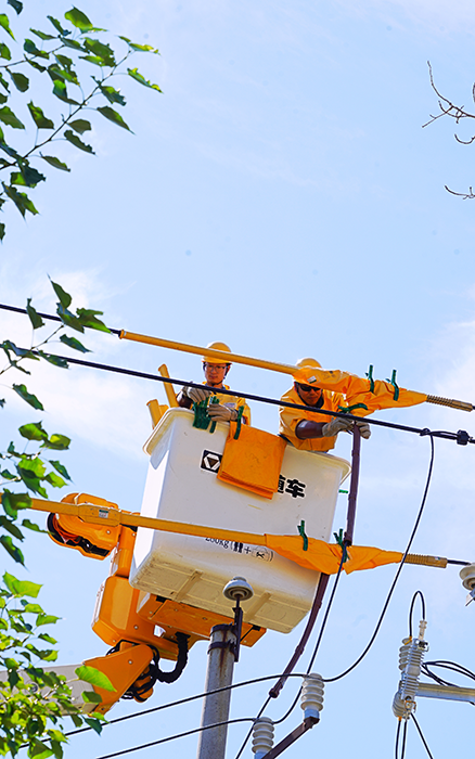 工作人员借助绝缘斗臂车,快速、精准地抵达作业位置。他们身着厚重的绝缘服,有条不紊地开展更换变压器工作。尽管汗水早已湿透衣衫,但大家的眼神中透露出专注与坚定。“绝缘服里像蒸桑拿,好在设备噪声小、连续干活不‘掉链子’,不然真扛不住这高温持久战。” 一位作业人员抹着额头的汗说。