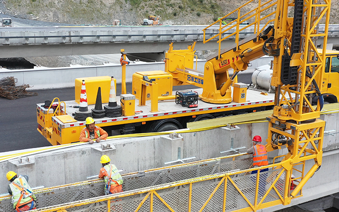 复杂地质构造曾让传统施工因落石、涌水屡屡受阻,而徐工桥检车的桁架能轻松跨越数米宽裂隙区,让 “卡脖子” 地带变 “加速带”。