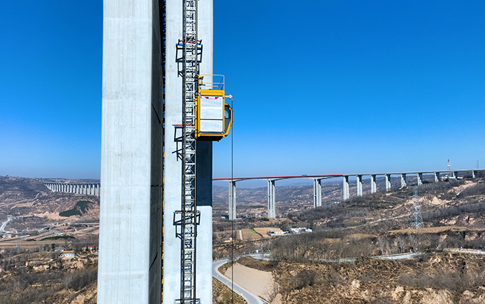 除了群塔助力,马莲河特大桥项目还使用了6台徐工SC200/200FS1施工升降机,卓越的性能有效保障钢筋、水泥等建筑材料运输安全,助力项目高效施工。