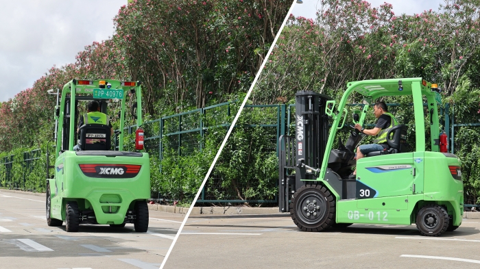 徐工鲲鹏系列电动平衡重叉车的铅酸、锂电同平台设计再次发挥巨大优势。车辆配备声光预警、OPS及紧急制动等多重安全防护系统,有效降低人机混合作业的安全风险。