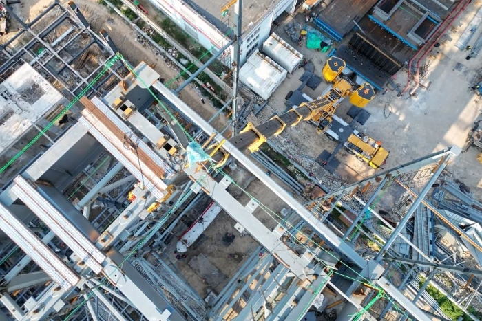 由于场地狭窄,障碍物环绕,集气包还需精准送入已建车间内部,车间上方同样阻碍重重,给施工增加了难度。