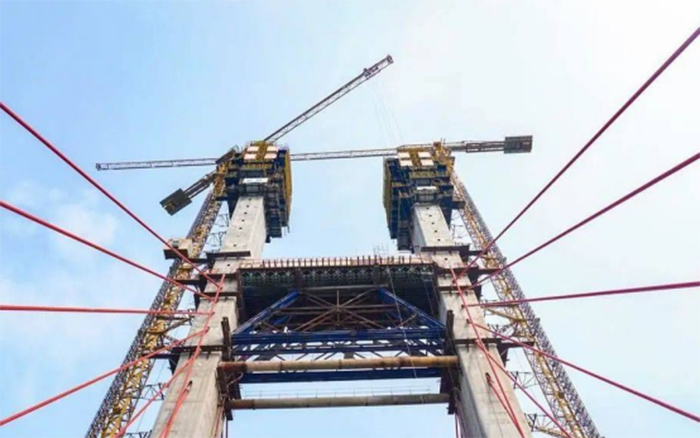 随着4号主塔、3号主塔顺利封顶,大桥建设步入快车道。