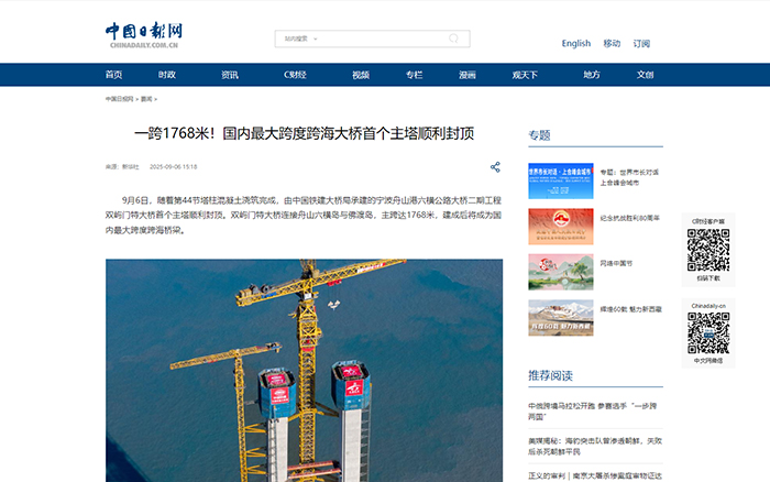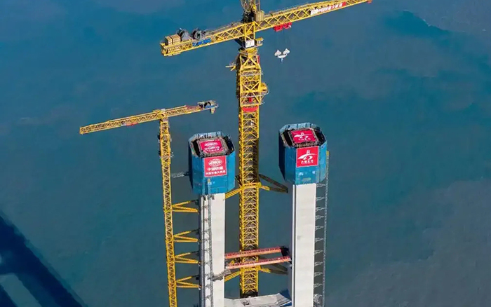 在封顶作业中,徐工塔机将百吨构件以毫米级精度吊装至200余米高空,硬刚10级海风,创造了海上桥梁建设新纪录。多台群塔协同作业,创造性攻克"高空精度、抗风稳性、吊装效率"三大世界级施工难题,展现了中国装备的卓越性能。