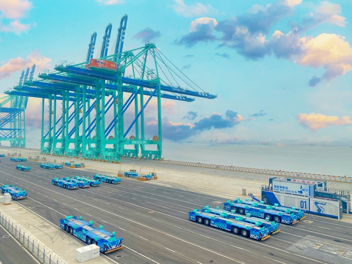 投入运行以来,徐工持续优化AGV集群控制算法与调度策略,不断刷新智慧港口运营新纪录。截至目前,已有近百台AGV在天津港实现规模化稳定运行,累计作业箱量突破百万箱,助力港口综合运营成本降低30%以上。