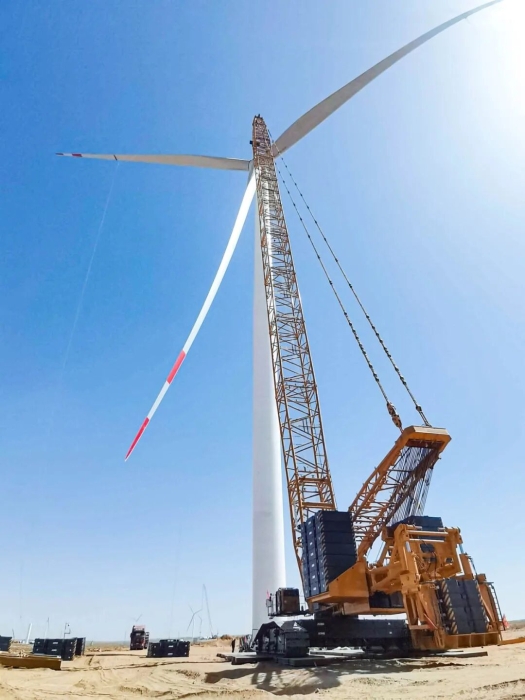 近日,徐工XLC18000M(1300吨级)履带起重机在甘肃某风电项目现场迎来高光时刻,圆满完成了20台风机吊装,标志着该10万兆瓦风电项目取得阶段性胜利。