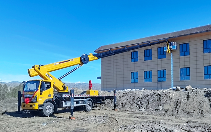 在某建筑外立面翻新工地,斑驳墙体待焕新,徐工 GKS45A 高空作业车凭借核心性能,成为破解高空难题的 “主力”,尤其在安全、高效与平稳性上,完美适配翻新作业需求。翻新作业中,GKS45A 的平稳性与高效性通过飞臂设计充分体现。面对墙体转角、窗台凸起等障碍,飞臂可灵活调角避障,平稳将人员与工具送抵作业点,无需反复调整设备,大幅减少无效时间,让打磨、涂漆等工序顺畅推进;搭配全幅度回转功能,作业平台能灵活覆盖各翻新点位,进一步提升施工效率。