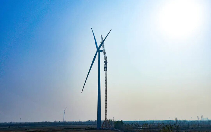 目前,风场正在如火如荼的建设中,徐工XGL3300-220S凭借其高效机动性,实现了风机吊装环节的快速衔接,助力一台台风机拔地而起,为绿色能源建设注入强劲动力。