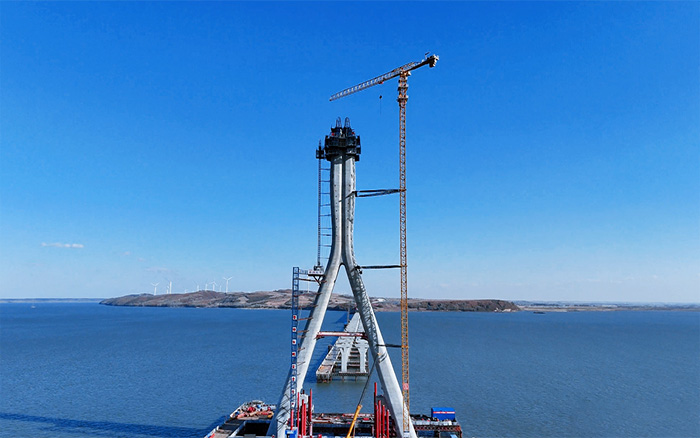 130余米的徐工XGT7528A-18S1塔机刺破苍穹助力大桥主塔封顶