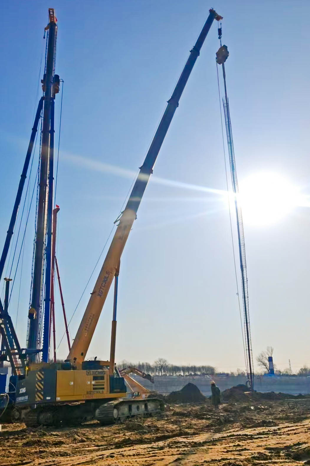 近日,北京某重点基础施工现场,一台徐工XGTC30L5(30吨级)伸缩臂履带起重机伸展出36米的主臂,在12米工作幅度上,将一根3吨重的钢筋笼精准植入预定桩孔。