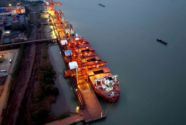 如今,主角换成了36台徐工纯电动自卸车。它们高频往返于码头、堆场与转运点之间,进行矿粉、煤炭等大宗散货的内部倒运,因显著的经济效益与可靠的运营效能备受用户青睐,将“近零碳港口”从纸面蓝图转化为生动实践。