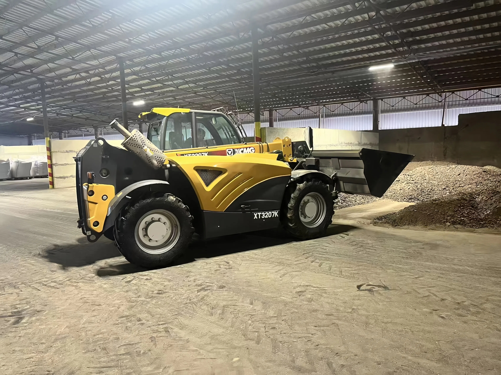更值得一提的是,XT3207K具备多属具切换能力,除了粮储仓库的铲装作业,还能适配抱夹属具完成草料捆转运,更换喂料属具开展饲料投喂等农场作业,真正实现“一机多用”。客户直言:“这台车行驶灵活、转向方便,多场景适配的特性大幅提升了农场工作效率。”徐工XT3207K也凭借这份全能表现,成为农业与粮储领域的作业“利器”。