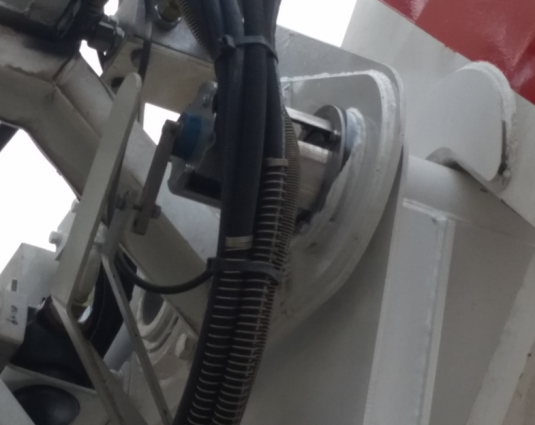 (3)安装位置:传感器安装在基本臂上,传感器连接齿轮,另一臂架轴上带相应齿轮。
