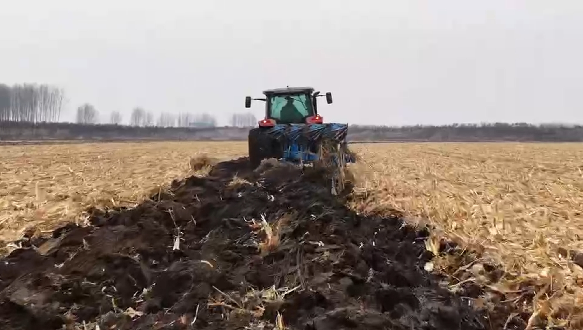 这台动力换向拖拉机动力强劲,配备大马力发动机,扭矩储备大,面对德惠地区黑土地深厚的耕层,依然游刃有余。搭载450液压翻转犁,作业幅宽大,入土角度精准。随着拖拉机沉稳前行,犁铧整齐地将土壤翻转,黑土层如波浪般翻开,覆盖严密、沟底平整,彻底打破了犁底层。