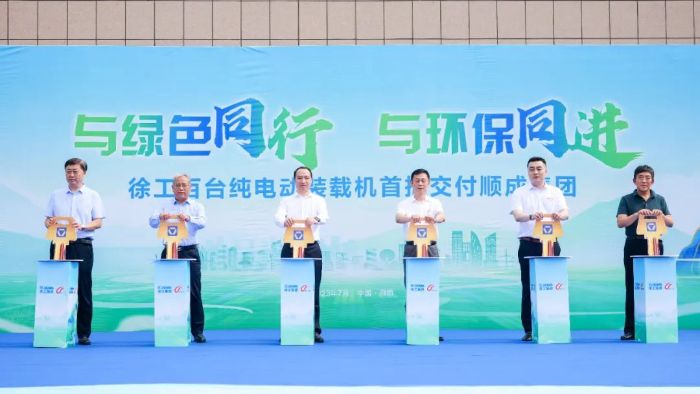 7 月 10 日,“与绿色同行,与环保同进——徐工百台纯电动装载机首批交付仪式”在河南某煤炭龙头企业生产基地举办。