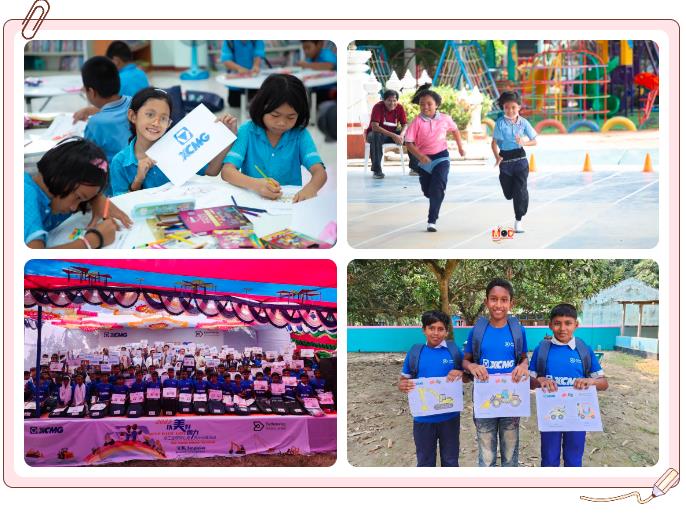 徐工志愿者联合当地经销商OCR公司前往泰国 Ban Santikham 小 学 、 孟 加 拉 Chuadanga 地区Kolabari Ramnagar 高中,为当地的同学们送去了微心愿礼物,组织了一场别开生面的“徐工Sports Day”。佩戴上徐工运动会的奖牌,手捧徐工微心愿的小礼物,兴奋之情写满了学生们稚嫩的脸庞。