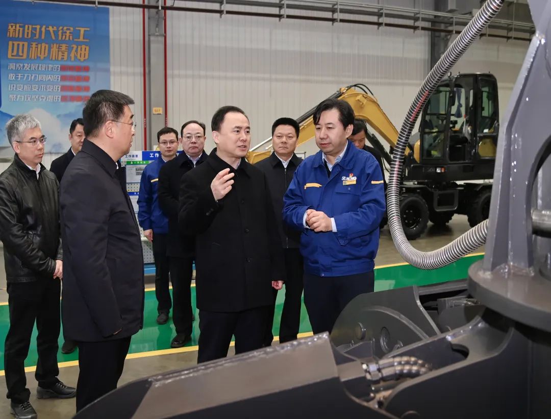 2月19日上午,徐州市委书记宋乐伟一行来到徐工,开展“贴心交流、暖心服务、真心惠企”走访服务企业活动,专题调研企业复工复产工作。徐工集团、徐工机械董事长、党委书记杨东升,徐工机械副总裁、挖机事业部总经理、党委书记宋之克陪同调研。