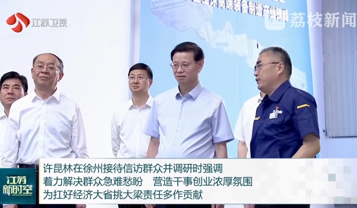 6月24日,江苏省省长许昆林深入徐州走访调研。他强调,要深入贯彻落实习近平总书记对江苏工作重要讲话精神,进一步营造干事创业浓厚氛围,以更实举措推动经济运行持续向好,为扛好经济大省挑大梁责任多作贡献。