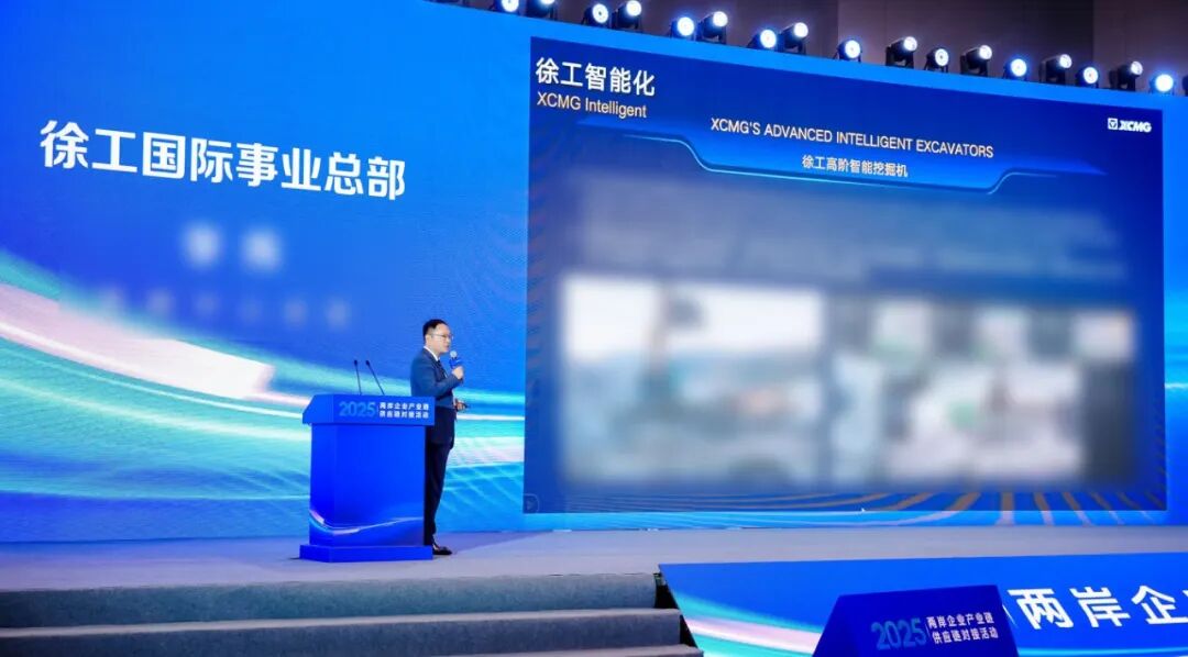 在专场宣讲环节,徐工出席代表以《智慧施工赋能两岸基建高质量发展》为题,分享徐工在智能化制造、绿色技术创新和全球服务体系等方面的核心优势,并通过生动的案例展示徐工如何为各类工程项目提供高效、可靠、环保的整体解决方案。