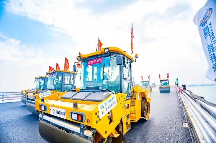 翔安大桥在建设中既要克服海上风浪大、潮差高、岩层强度高、跨越生态保护区等困难,又要兼顾绿色环保;要在这种复杂的环境中保证施工质量,对设备和施工技术的选择就显得尤为重要。徐工数字化智能施工集群凭借其智能化、高精度、高效率等显著优势,成功克服了传统施工方式难以应对的诸多难题,可精准适配翔安大桥的桥面铺装工作。