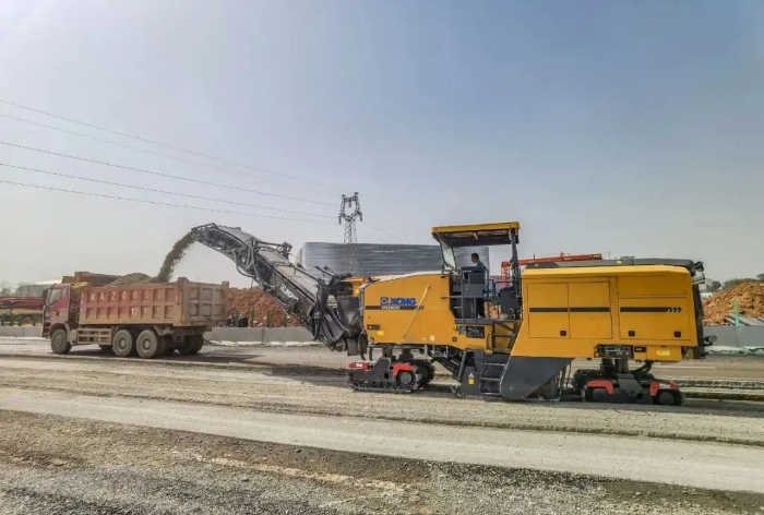 不仅如此,XM2005K通过优化的刀具排布及刀头入土角度,在保证了大铣深铣刨能力的前提下能够最大程度减小铣刨阻力,确保在各种苛刻工况下依然能够高效施工。徐工铣刨机在场馆配套道路建设中表现优异,其铣刨能力、施工稳定性、施工经济性均得到了施工方的肯定。