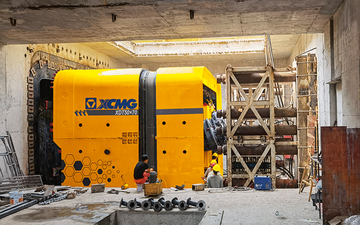 郑州机场至许昌市域铁路工程郑州段土建施工02标段,寺东孙站1号出入口目前正在紧张进行中,参建施工的徐工XDT50*70矩形顶管机属于首秀。