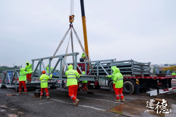 本次演练以山洪爆发、泥石流、台风等极端气候造成的道路内涝深坑积水、道路大面积塌方、公路桥梁冲毁以及危化品运输车泄漏等特殊情况为背景,模拟公路水毁阻塞交通、桥梁垮塌中断交通,演练队伍严正执行,在规定时限内迅速完成桁架拼装、桥面铺设、桥梁落座,完成公路应急装备漕渡任务。