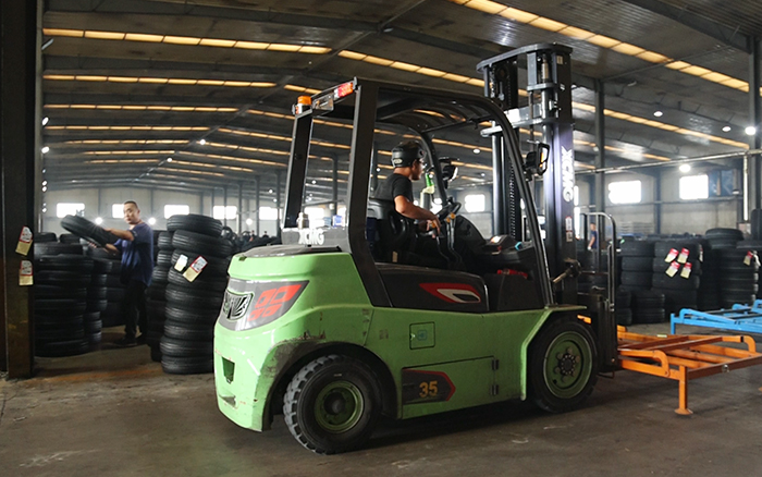 在轮胎行业的广阔舞台上,徐工孔雀系列电动平衡重叉车正绽放着独特的光芒。