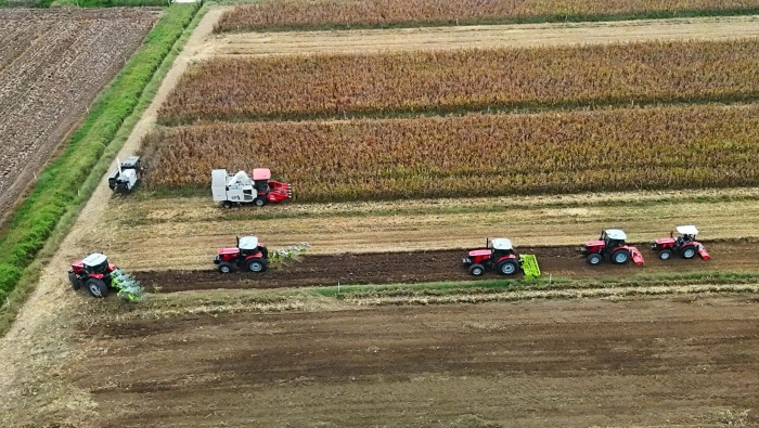 8月25日,徐工成套化农业机械推广会在河南南阳顺利举行,玉米收获机和拖拉机的田间联合作业演示,全方位展现了徐工农业机械高效的作业表现。