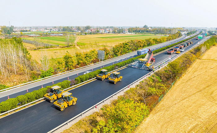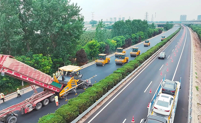 自2022年下半年开始,徐工成套道路机械就已多次参与过连霍高速的施工工作,受到业主方的肯定。2024年下半年,徐工道路明星“工友团”再次闪亮登场,凭借自己的智慧“大脑”,在连霍高速的养护工程建设中大放异彩。施工由徐工超大宽度摊铺机RP2405和压路机XD133S这两款高性能设备联袂,在摊铺厚度为100px的沥青上面层进行高效施工。凭借超强的作业能力和先进可靠的产品性能,在高速路面上精准实现一次摊铺成型。